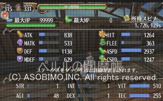 ちなみにこの組み合わせの場合はこんなステータスになります